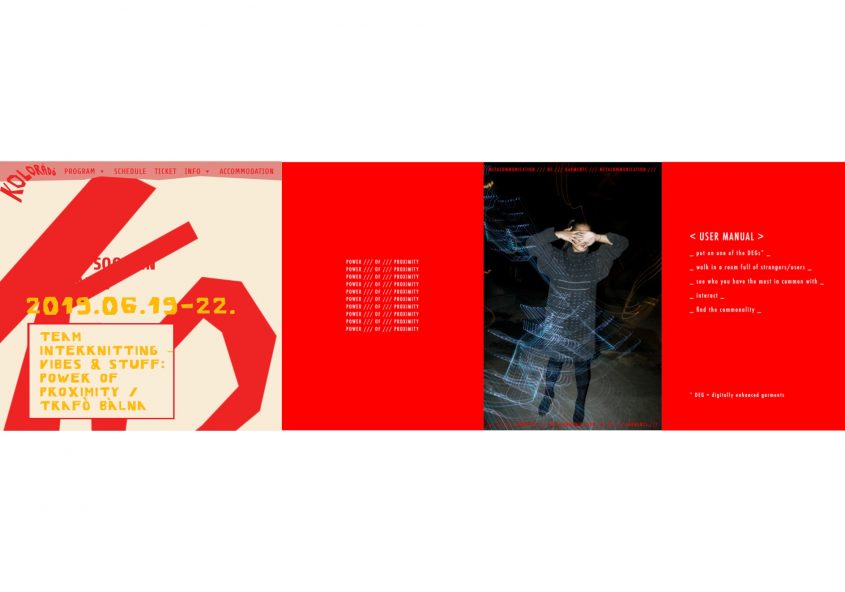 Június 21. Team Interknitting – Vibes & Stuff: Power of Proximity (installáció és performansz), installáció / 15:00-21:00, Bonding-táncperformansz 21:00 és 21:30